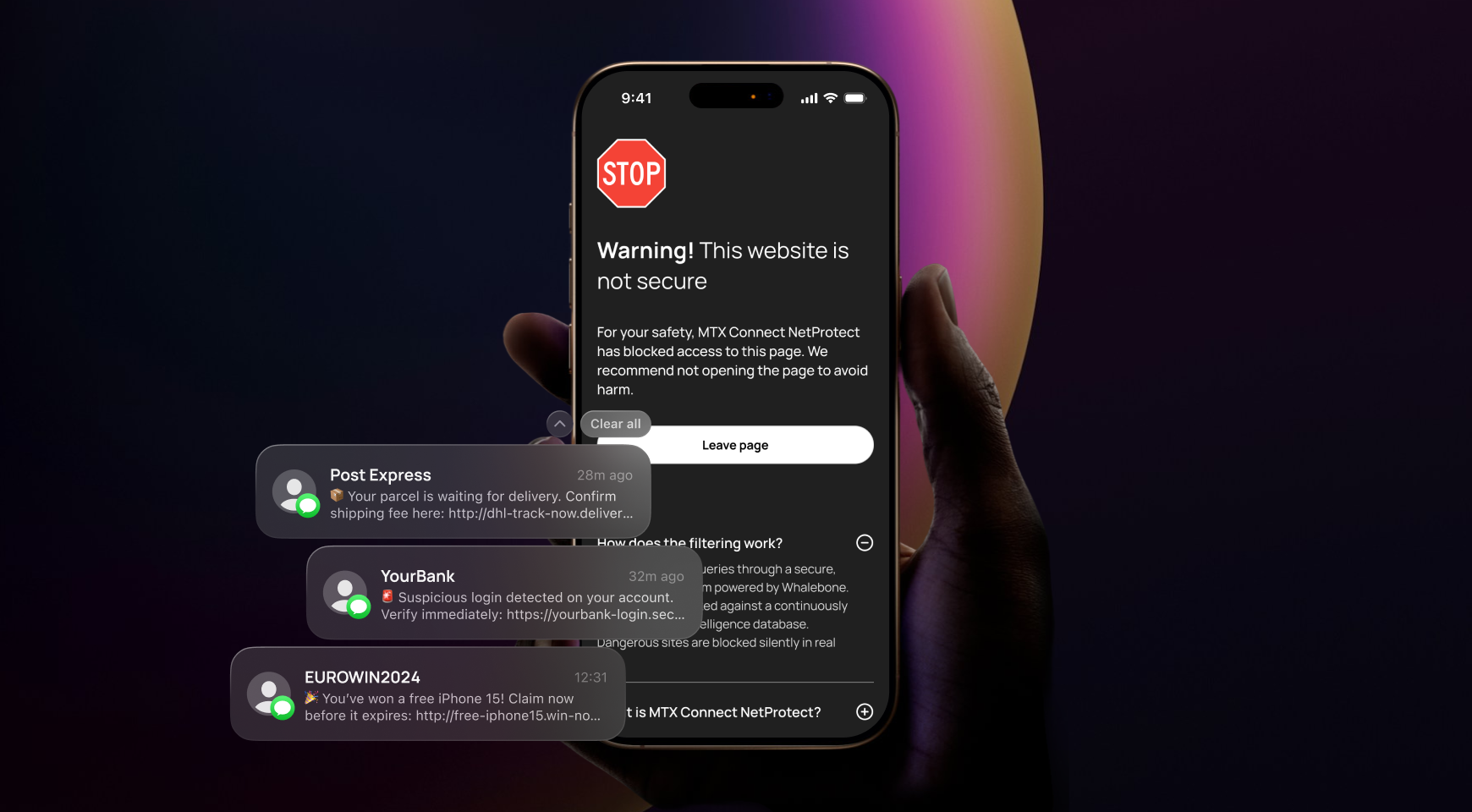 "Partnering with Whalebone has enabled us to offer our customers an advanced cybersecurity solution that is both effective and easy to use. Their expertise in network-level protection has been instrumental in enhancing the security of our services,” said Mike Kornev, CTO at MTX Connect.